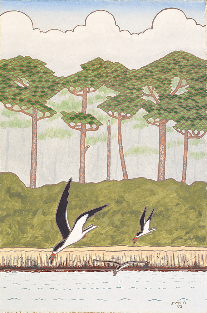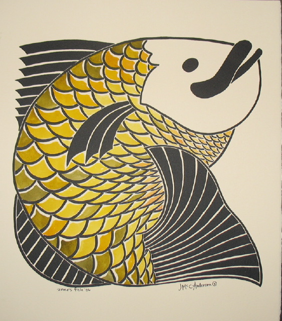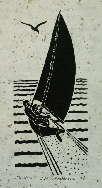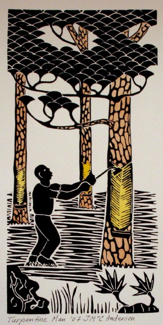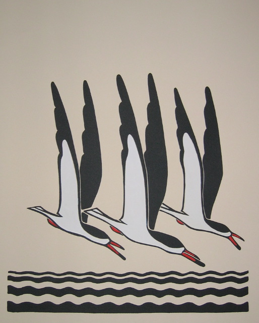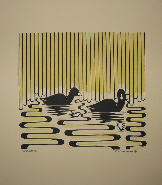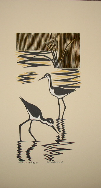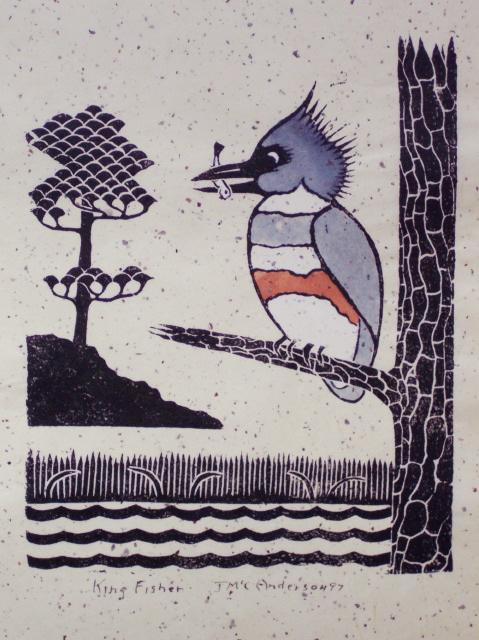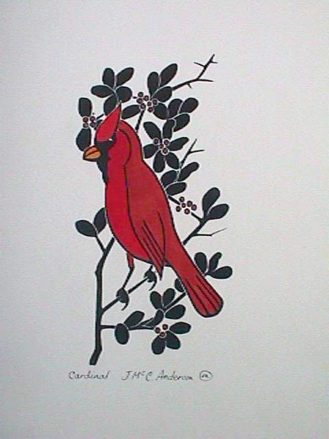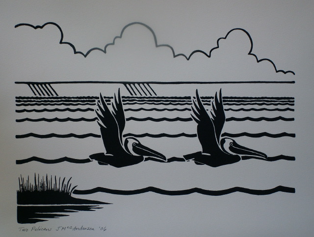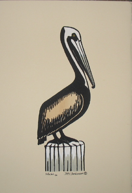 James McConnell Anderson -- a master printmaker, painter, and decorator of pottery -- evolved a unique and individual style over a period of nine decades. He is the younger brother to Peter and Walter Anderson, both well-known Mississippi artists. Two years of architectural training contributed structured, flat spaces to his artwork, reflecting calmness of spirit and timelessness. Below are some silk screen prints which are available, made from the linoleum block prints carved by James McConnell Anderson.