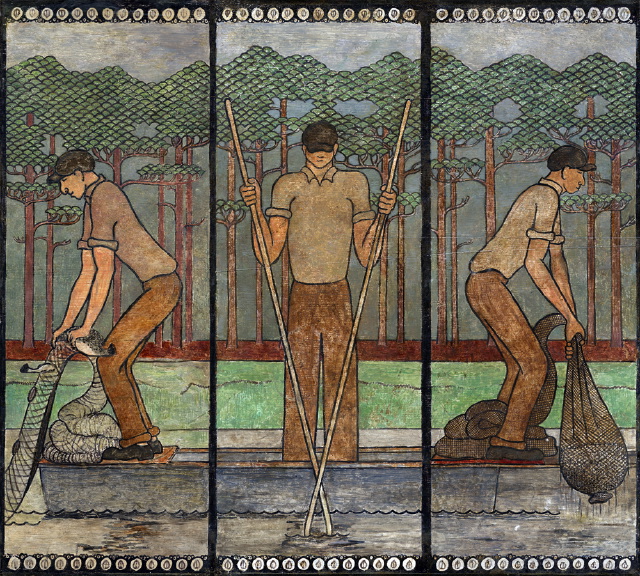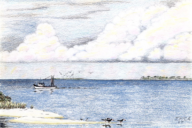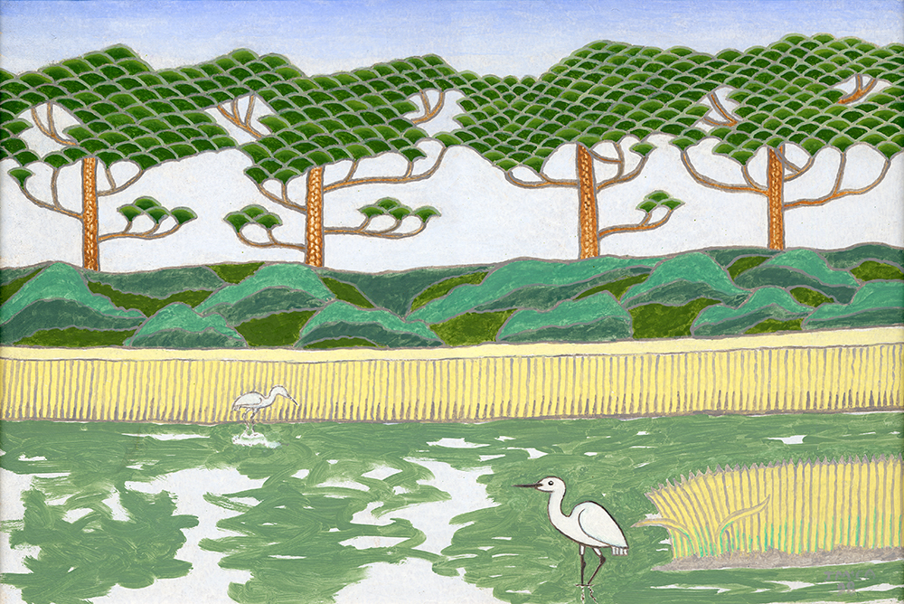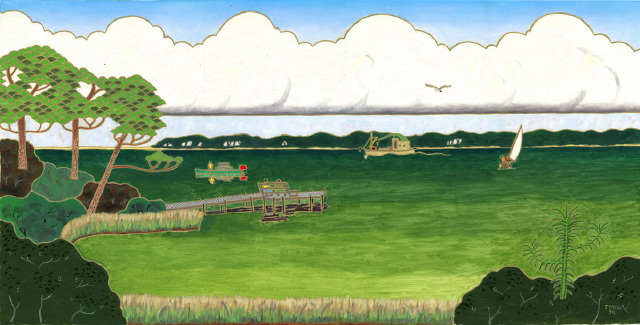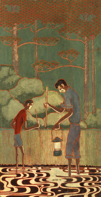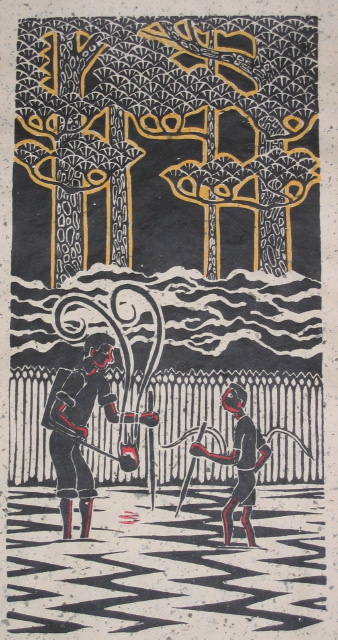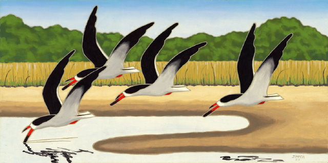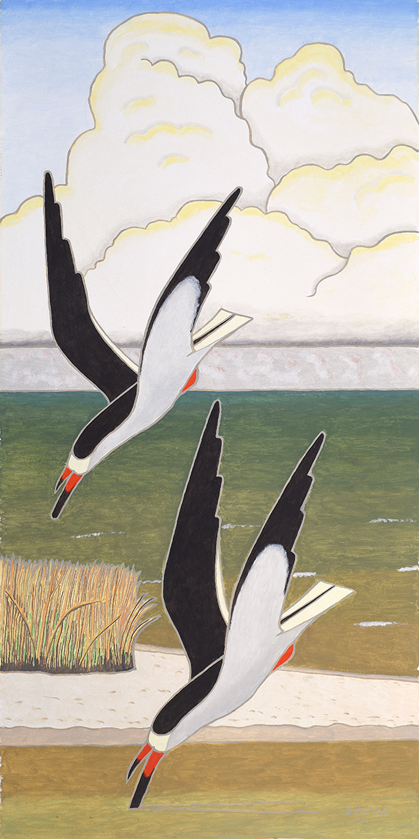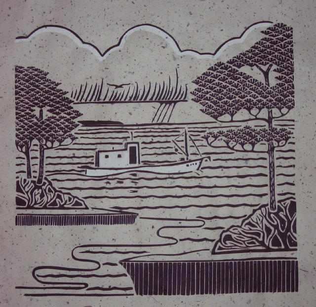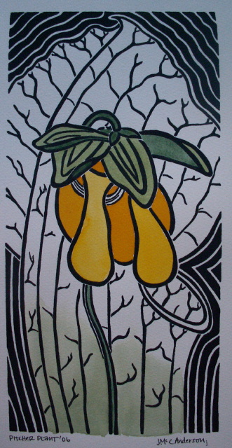 James McConnell Anderson -- a master printmaker, painter, and decorator of pottery -- evolved a unique and individual style over a period of nine decades. He is the younger brother to Peter and Walter Anderson, both well-known Mississippi artists. Two years of architectural training contributed structured, flat spaces to his artwork, reflecting calmness of spirit and timelessness. Below are some silk screen prints which are available, made from the linoleum block prints carved by James McConnell Anderson.